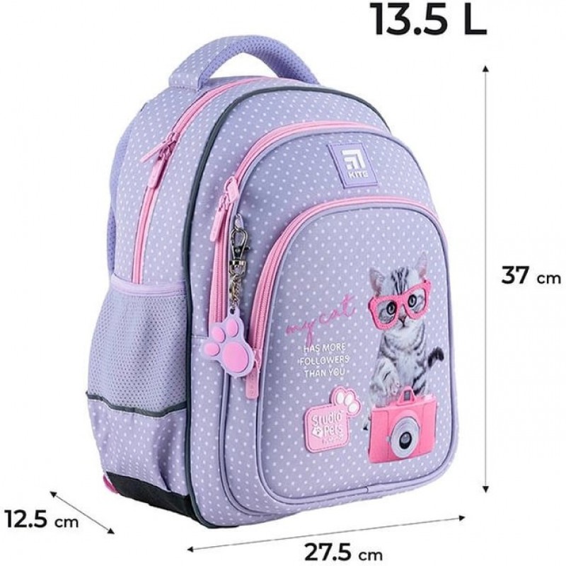 Рюкзак шкільний Kite Studio Pets 37x27.5х12.5 см Сірий (SP24-763S)